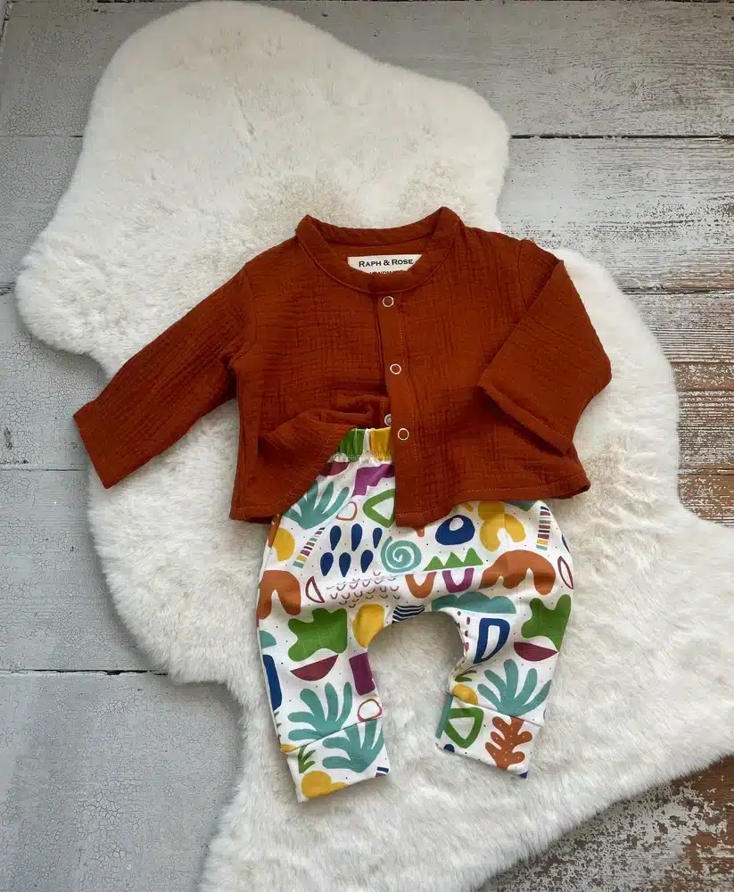 The card echoes the same print story as the clothing, creating a thoughtful, considered gift that feels personal and cohesive — something parents can keep long after little ones have grown out of their clothes.