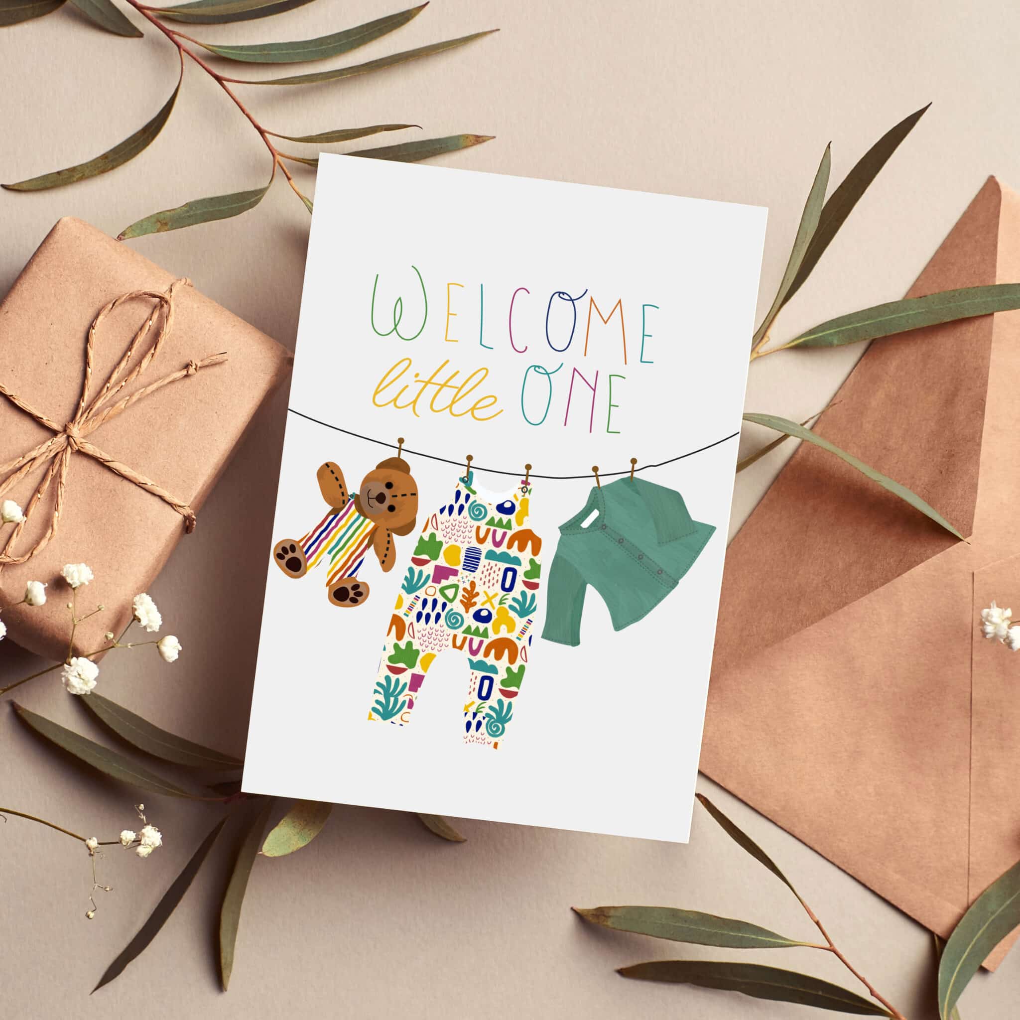 Welcome, little one, greeting card.